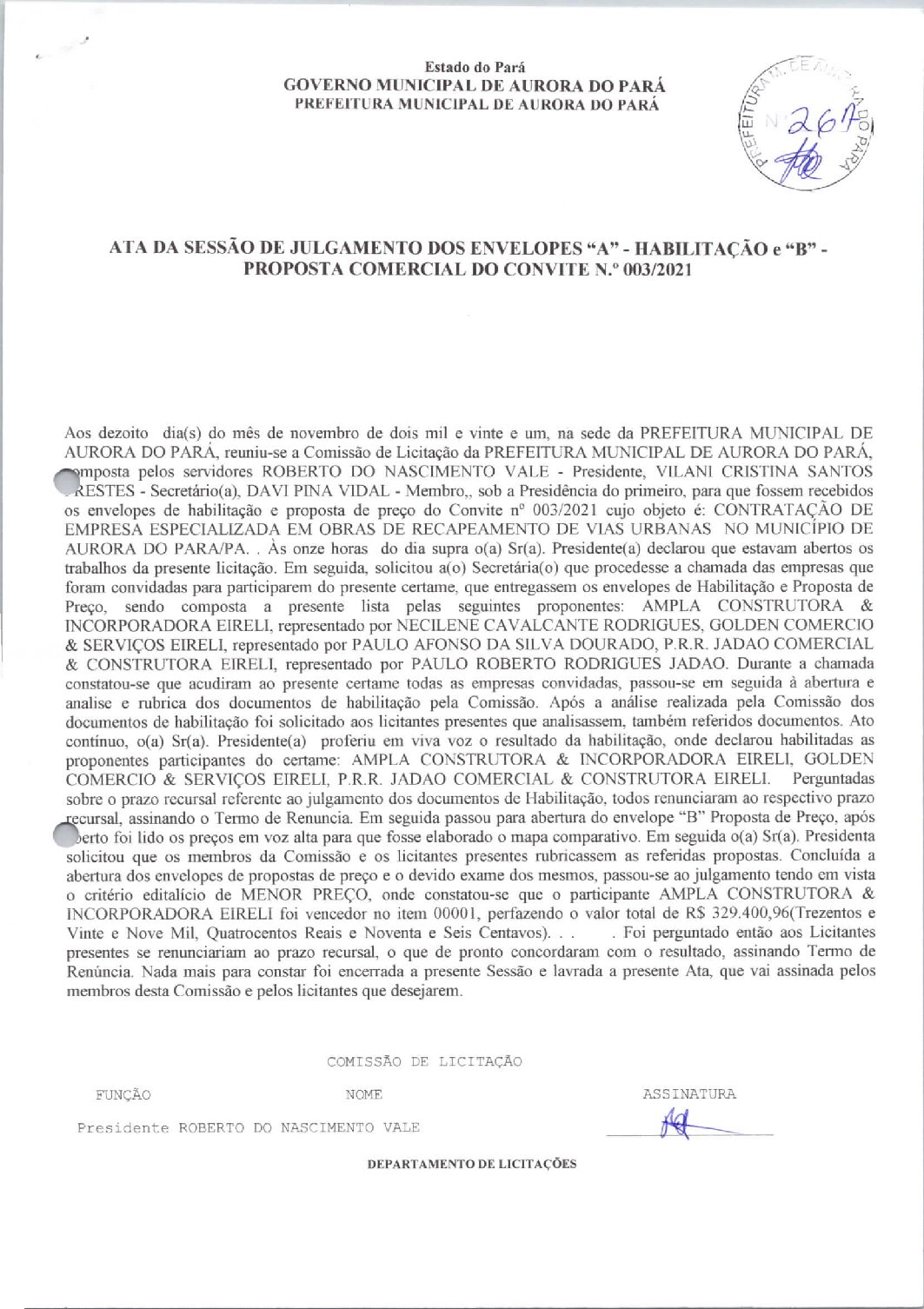 Ata da sessão de abertura e julgamento das propostas