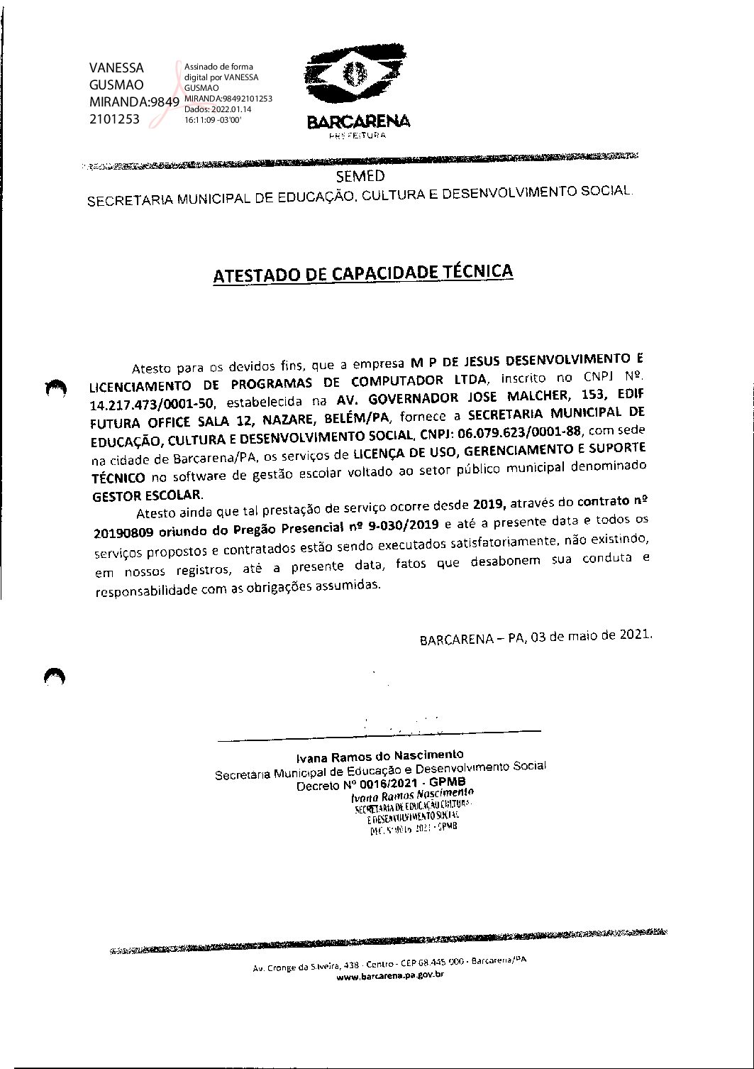 COMPROVAÇÃO DE NOTORIA ESPECIALIZAÇÃO